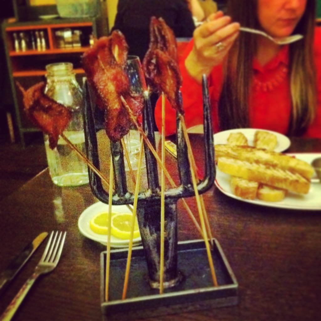 Our last meal in New Orleans was at Sylvain. It’s hard to eat in this city on a Sunday because so many restaurants are closed, but luckily we were able to get a table at Sylvain around 9:30. It was lovely eating in their beautiful outdoor area (especially since it was January,) but we were so full from that afternoon’s po’ boy excursion that Randi and I couldn’t even eat our entrees – the slow cooked pork sandwiches that looked oh so delicious. We did eat plenty of appetizers that we loved, mostly the beef belly and the brussels sprouts. The service here was excellent and we drank some fantastic wine. I’d like to go back here when I have more of an appetite.