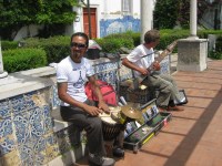 The concierge at our hotel who we had befriended over our week long stay invited us on our last night in Portugal to see him play guitar with his traditional Fado group. We met Ricardo and his wife Elena at the restaurant where this took place, and Elena sat with us as Ricardo went to set up his guitar with the other musicians. It was a small restaurant, with only about 10 tables inside. Everyone in this restaurant clearly knew each other very well and looked at us quizzically, wondering why these foreign strangers had come to join in their weekly Fado tradition. Elena introduced us to our waitress, Matilda, and then suggested we order the cod. I was so sick of cod by this point in the trip, but it seemed rude to decline her suggestion. Before the music started, Elena prepared us for exactly what was about to happen, which we were so grateful for. The tradition of playing Fado music is very different than anything I’ve seen in America. The closest form of music I can compare it to is opera. After our meal was served, the lights in the restaurant were dimmed, everyone went completely quiet and the four men softly began playing their Fado guitars – these beautiful, round bodied string instruments. A man from the audience stood up and began singing a slow, emotional tune, which I was fascinated by, but Elena whispered to us that he was one of the worst Fado singers in their group. Other singers from the audience took their turns, performing about three songs each. Then, to our surprise, our waitress, Matilda, took her turn. Once this petite woman began singing such an emotional, moving piece, I finally understood why Fado was such an incredible art form. She put her entire soul into this performance, conducting the entire thing with her eyes closed, and bringing the entire restaurant to tears. Elena told me that earlier this year, Matilda had lost her husband to cancer, and this was her way of expressing her grief. I couldn’t understand the words, but I could feel how much Matilda ached by listening to her song. We eventually finished our meal and said goodbye to the group, and Ricardo and Elena drove us back to the hotel. We hugged them and thanked them profusely for giving us this amazing, truly unique and authentic Portugese experience on our last night in Lisbon.